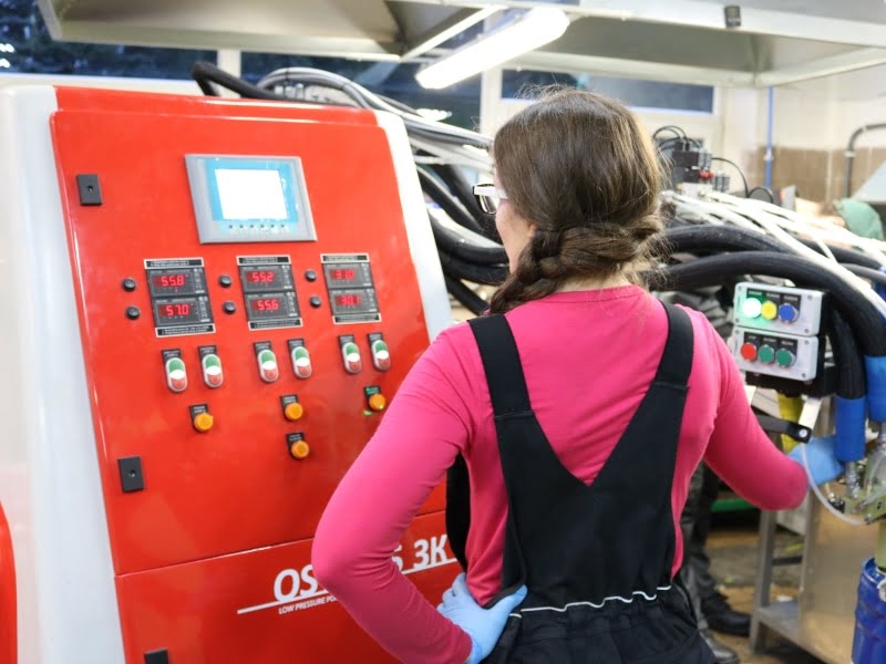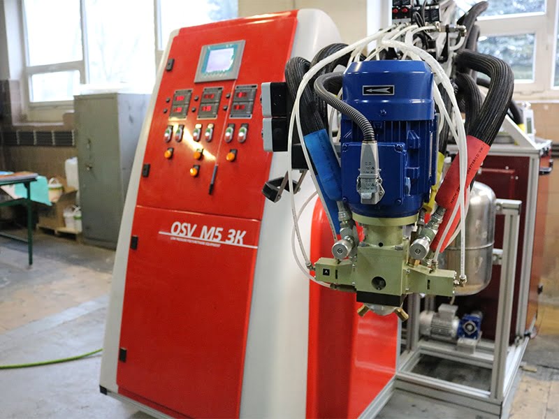 i pojemności wtrysku 3300 cm³, - 3-komponentową nalewarkę do elastomeru poliuretanowego,