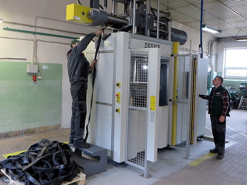 - nowoczesną wtryskarkę do gumy DESMA o sile zwarcia 4500 kN